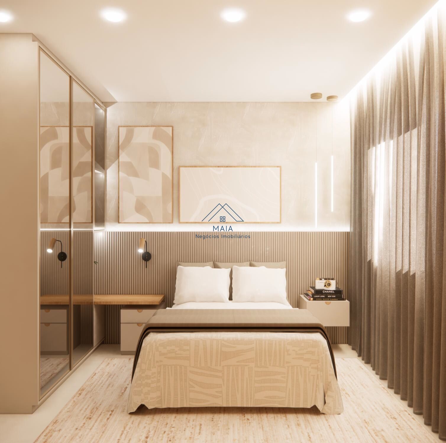 Acabamento diferenciado: porcelanato 90x90, bancadas em granito e revestimento das áreas molhadas até o teto. Ponto para ar condicionado no quarto da suíte.