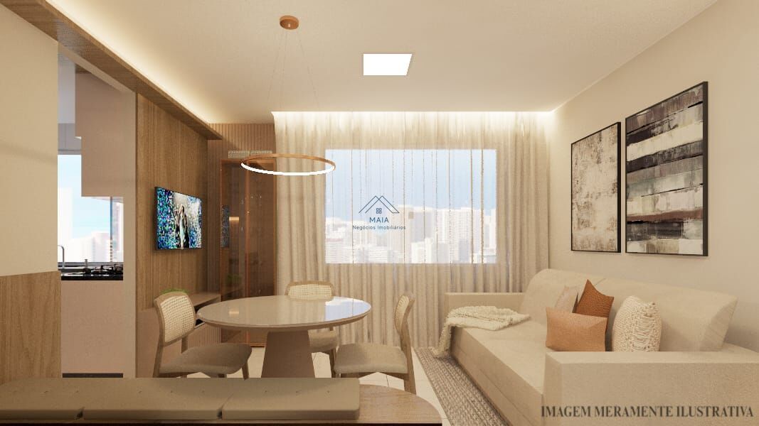 O apartamento é composto por: 3 quartos, sendo uma suíte, sala para dois ambientes, banheiro social, cozinha e área de serviço individual.