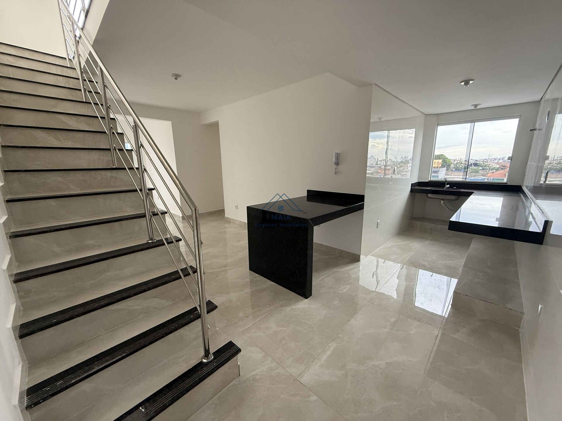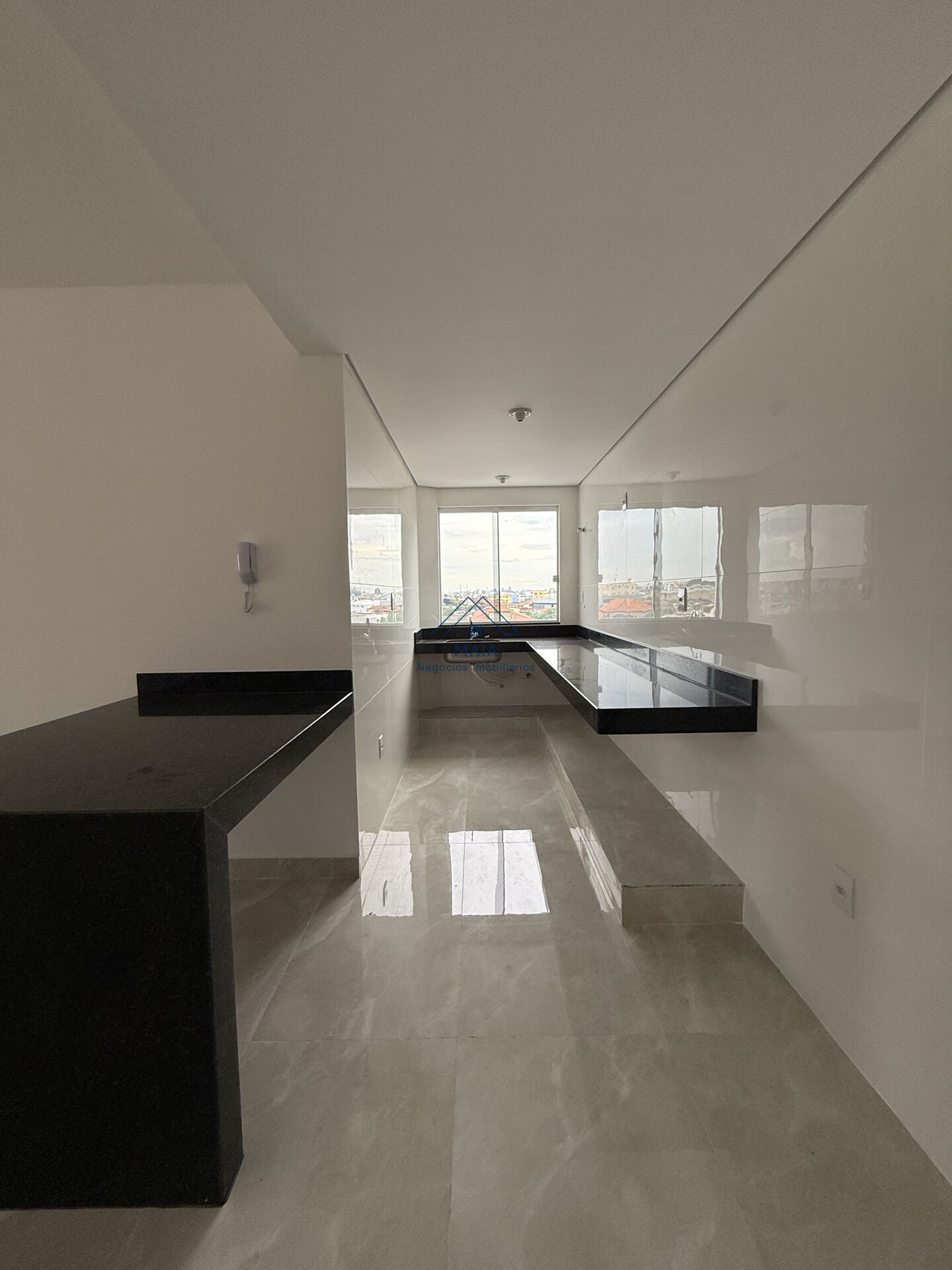 - Cozinha americana com bancada em granito;